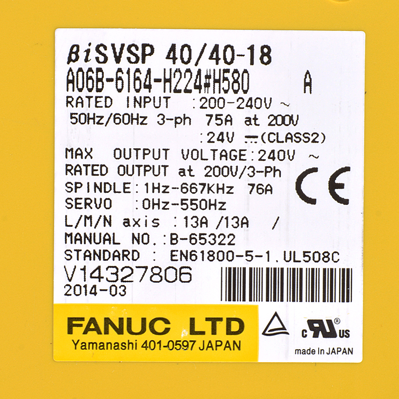 Fanuc Drives A06b - 6164 - H224 # H580 Fanuc Bisvpp 40/40 - 18
